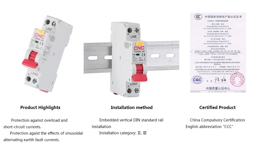 1. Защита от перегрузки и короткого замыкания.2. Защита agaist эффекты синусоидальных переменных эартских токов неисправности.3. Защита от непрямых контактов и дополнительная защита от прямых контактов.4. Защита от пожара, вызванного дефектами изоляции.5. Используется в жилых зданиях.6. В соответствии с типом мгновенных масел, классифицированных следующим образом: Тип B(3-5)In, Тип C(5-10)In.