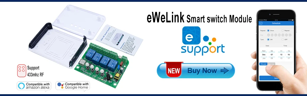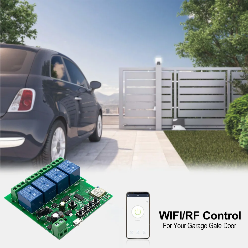 Этот продукт является 4-канальный универсальный WiFi беспроводной смарт-переключатель с RF 433 МГц RF модуль, для вашей системы «умный дом», чтобы удаленно и автоматического включения/выключения бытовой техники и электронных устройств с помощью приложения для телефона. Его также можно контролировать с помощью пульта дистанционного управления RF в помещении. Он может одновременно подключать и управлять четырьмя приборами в приложении, и вы можете самостоятельно включать/выключать каждую из четырех банд. Он также поддерживает включение/выключение устройств в определенное время и делиться ими с другими, чтобы вы могли контролировать свой умный дом вместе с семьей. Вы также можете управлять своей бытовой техникой через Amazon Alexa, а также для Google home/Nest,IFTTT и наслаждаться умной жизнью и сделать свой дом умнее.