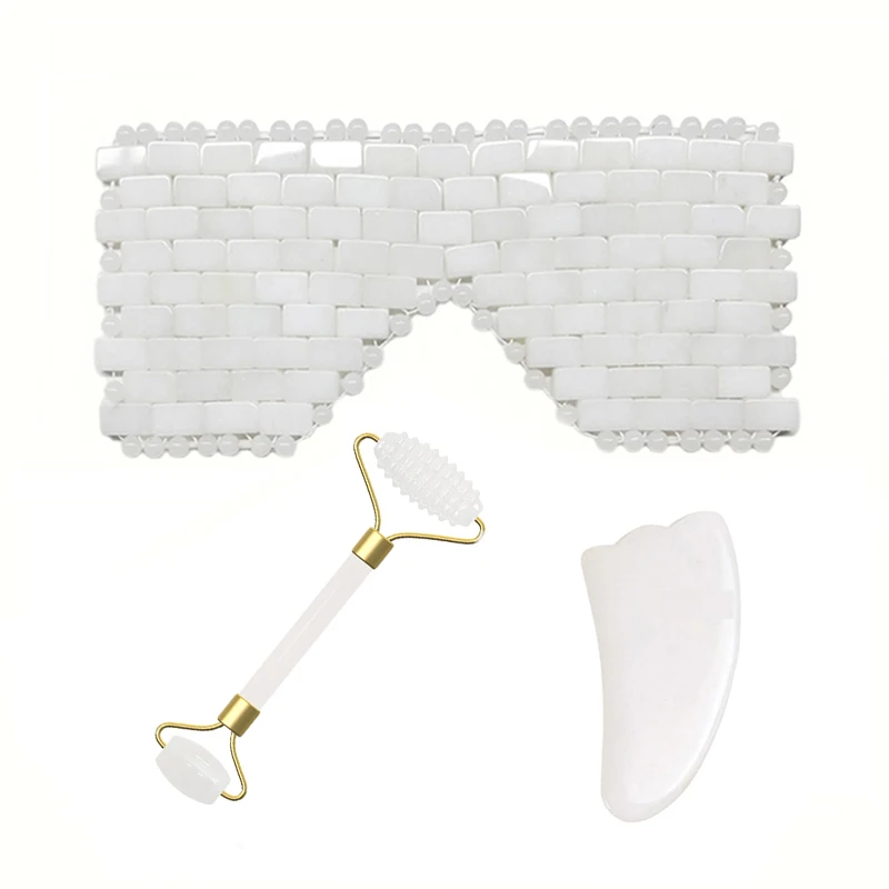 Маска для сна с белыми кристаллами, маска для глаз из натурального нефрита, набор для защиты глаз от старения, Нефритовая маска для холодной терапии, инструмент для ухода за глазами