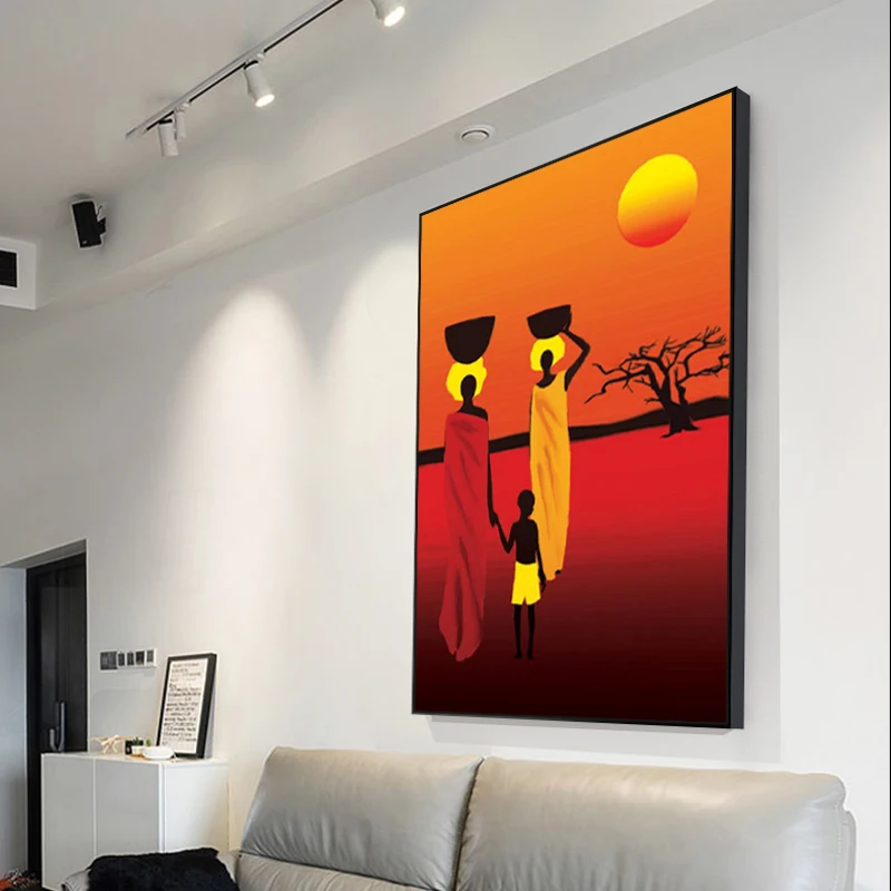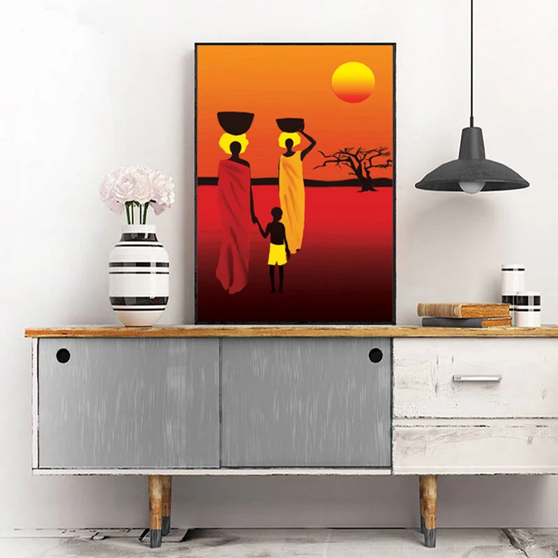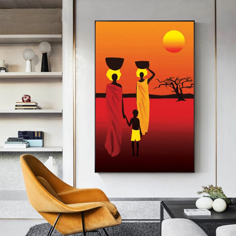 Африканская черная Женская фигурка, Картина на холсте в национально...