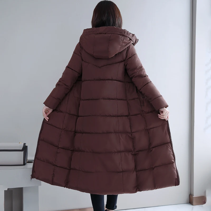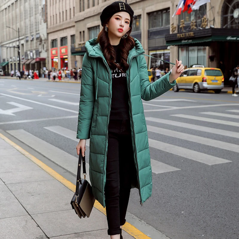 Зимняя женская куртка, пальто, одежда с 2021 хлопковой подкладкой, Длинная утепленная Свободная Женская парка с капюшоном, однотонная женская куртка 6XL