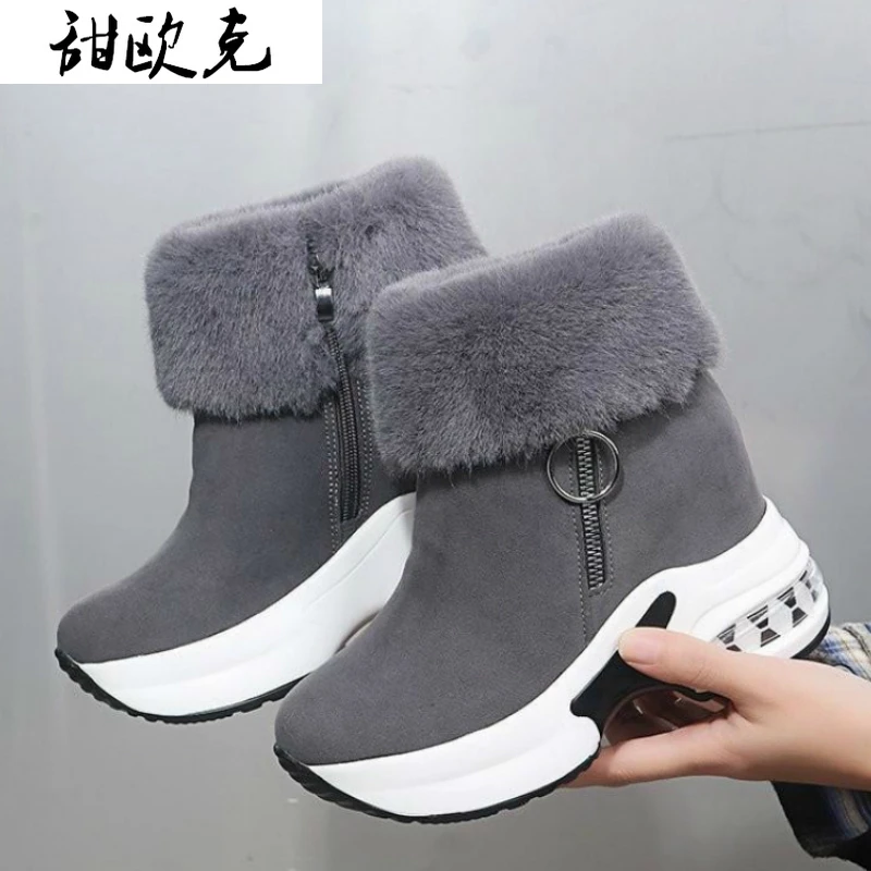 Ботинки женские зимние плюшевые, на высоком каблуке