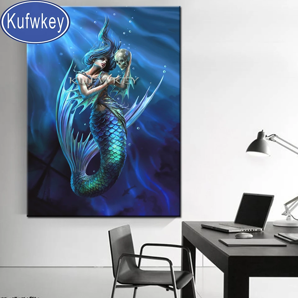 Круглая алмазная живопись, 5D алмазная живопись сделай сам, фантазия, Русалка и череп, полноразмерная, круглая, алмазная вышивка, Декор для дома,