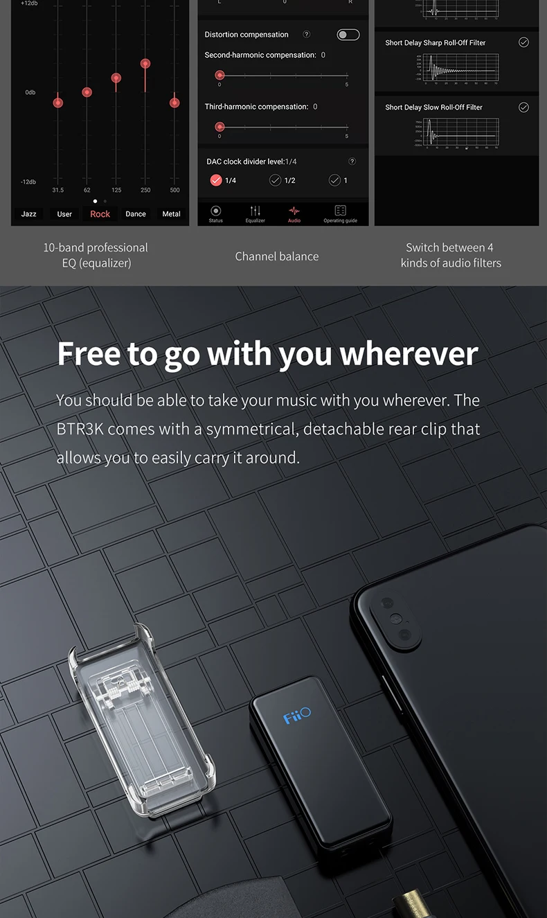 FiiO BTR3K AK4377A * 2 Сбалансированный Bluetooth 5,0 Amp USB DAC, поддержка LDACaptX HD lossless HiFi кодеки, звонки в режиме громкой связи, 2,53,5 мм
