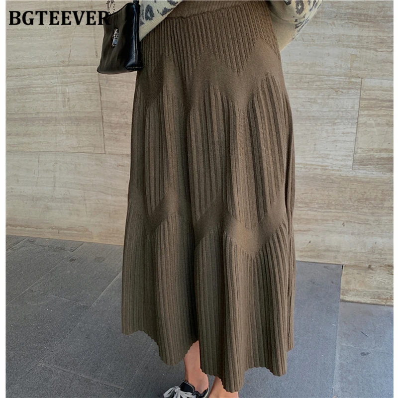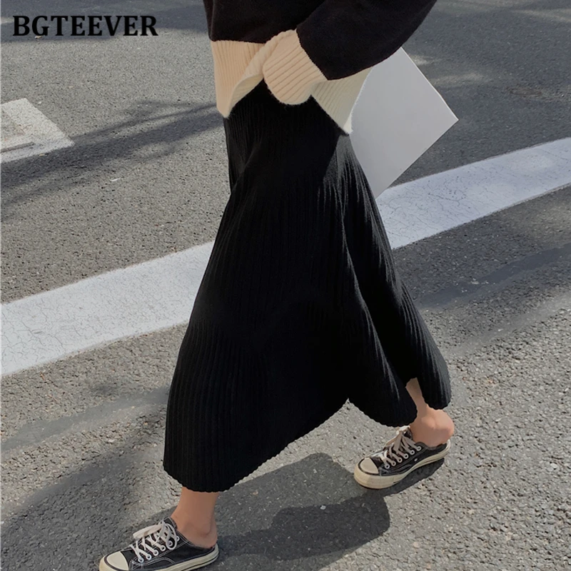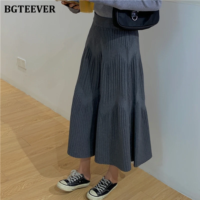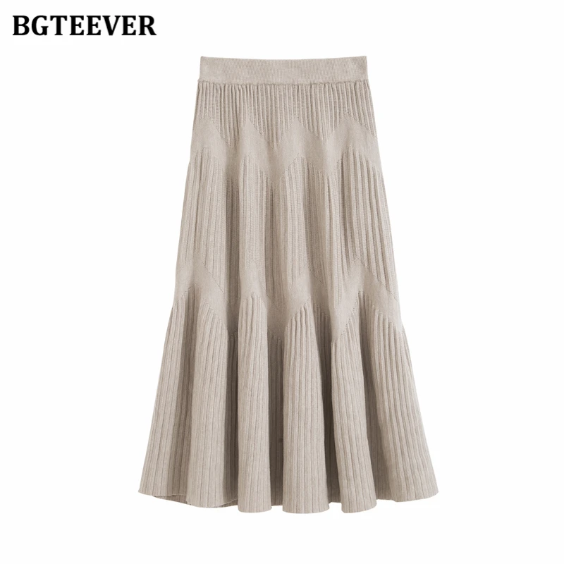 Женская трикотажная юбка BGTEEVER, плотная Повседневная Полосатая юбка-трапеция с эластичным поясом, модель 2020 на осень и зиму