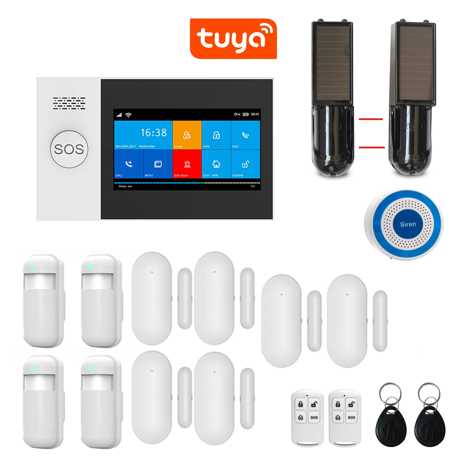 Wi-Fi GSM GPRS Tuya APP пульт дистанционного управления интеллектуальная домашняя охранная сигнализация 4,3 дюйма сенсорный экран на солнечной батарее ИК
