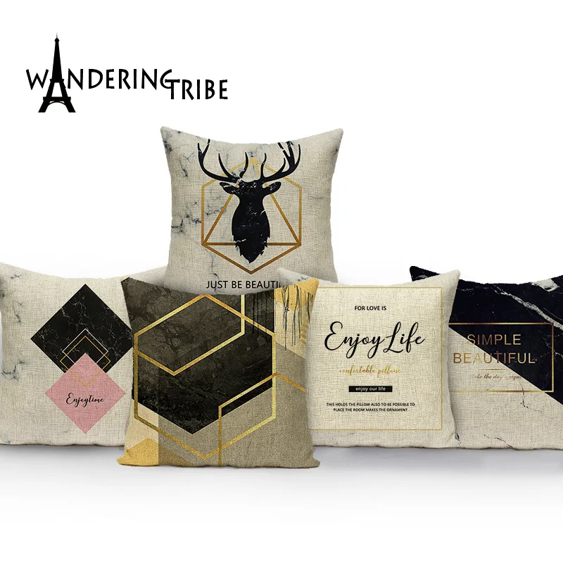 Чехол для подушки с буквенным геометрическим абстрактным декором, Роскошный чехол для подушки с мраморной полосой черного и золотого цвета, чехлы для подушек из Северной Европы kissen
