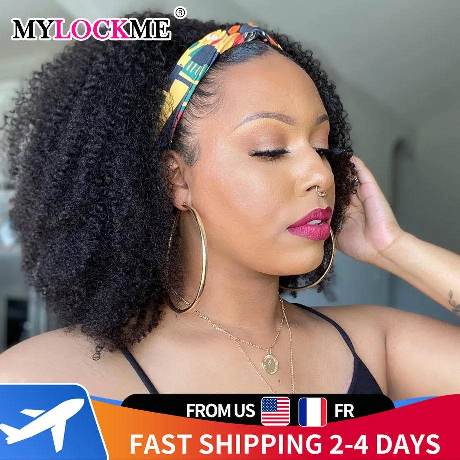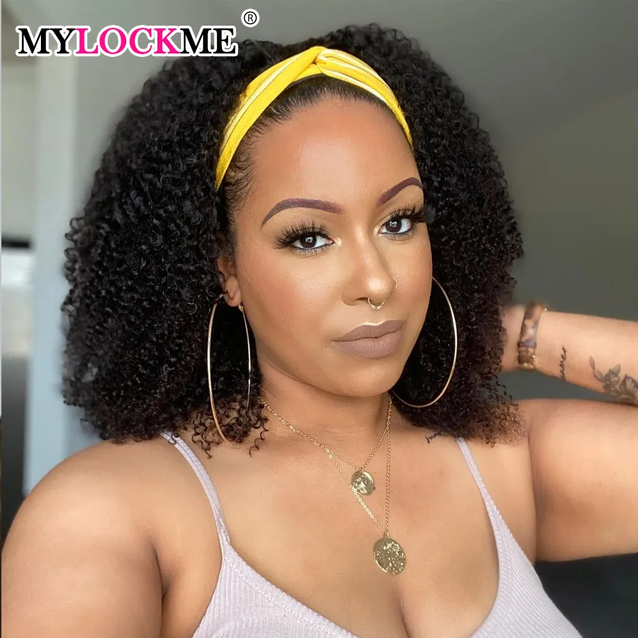 Повязка на голову, Женский афро кудрявый парик, 200% высокоплотные бразильские волосы Remy, быстрая установка, полностью натуральный китайский парик MYLOCKME