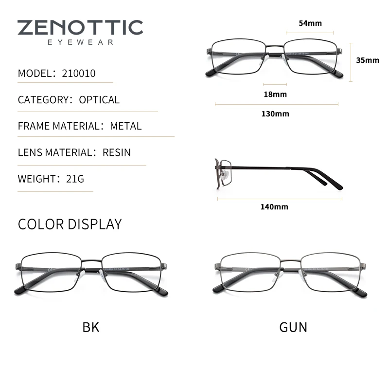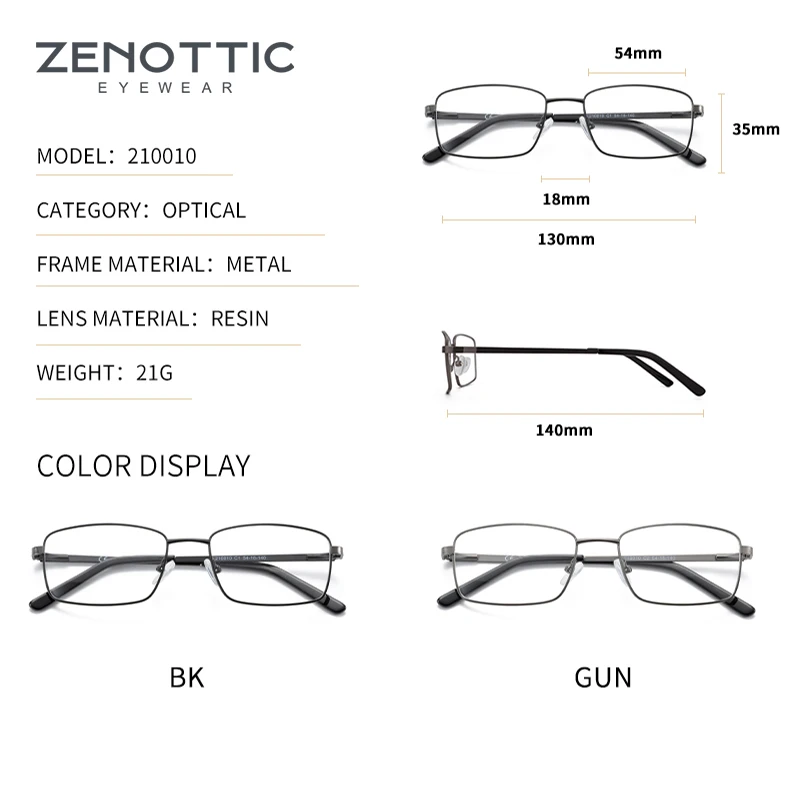 Оправа для очков ZENOTTIC Мужская Ультралегкая, металлическая квадратная оправа, в деловом стиле, оптические Рецептурные очки для коррекции миопии