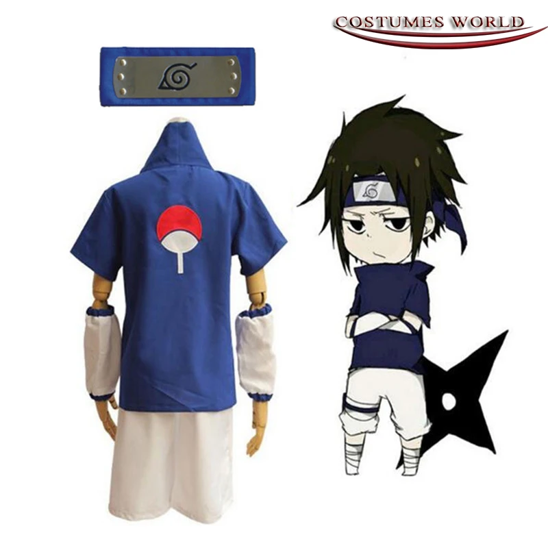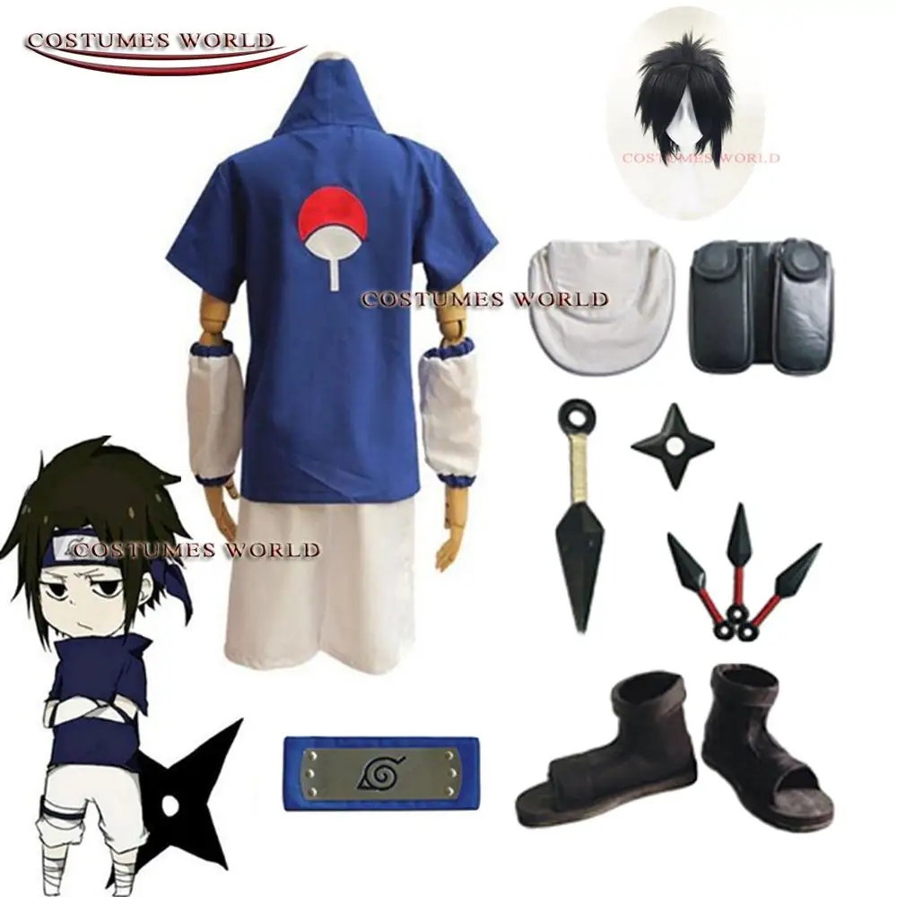 Костюм для косплея унисекс Athemis Ninja Uchiha Sasuke, с синей повязкой на голову, комплект оружия для мужчин и женщин, одежда для косплея на Хэллоуин