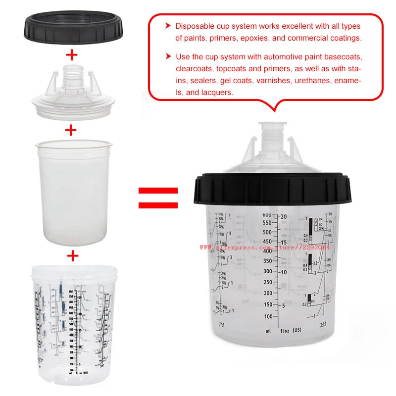 Краски пистолет-распылитель чашка с вкладышами и крышкой Системы 160/400/600/800 мл Пластик Краски чашки для смешивания внутренним покрытием с крышками для спрей-пистолет
