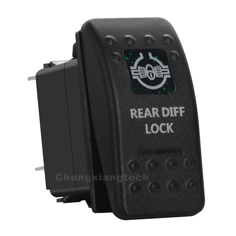 Задний переключатель с 5-контактным замком, зеленый светодиодный клавишный переключатель с подсветкой для автомобилей, лодок, грузовиков, 12 В, 24 В, SPST Carling Contura