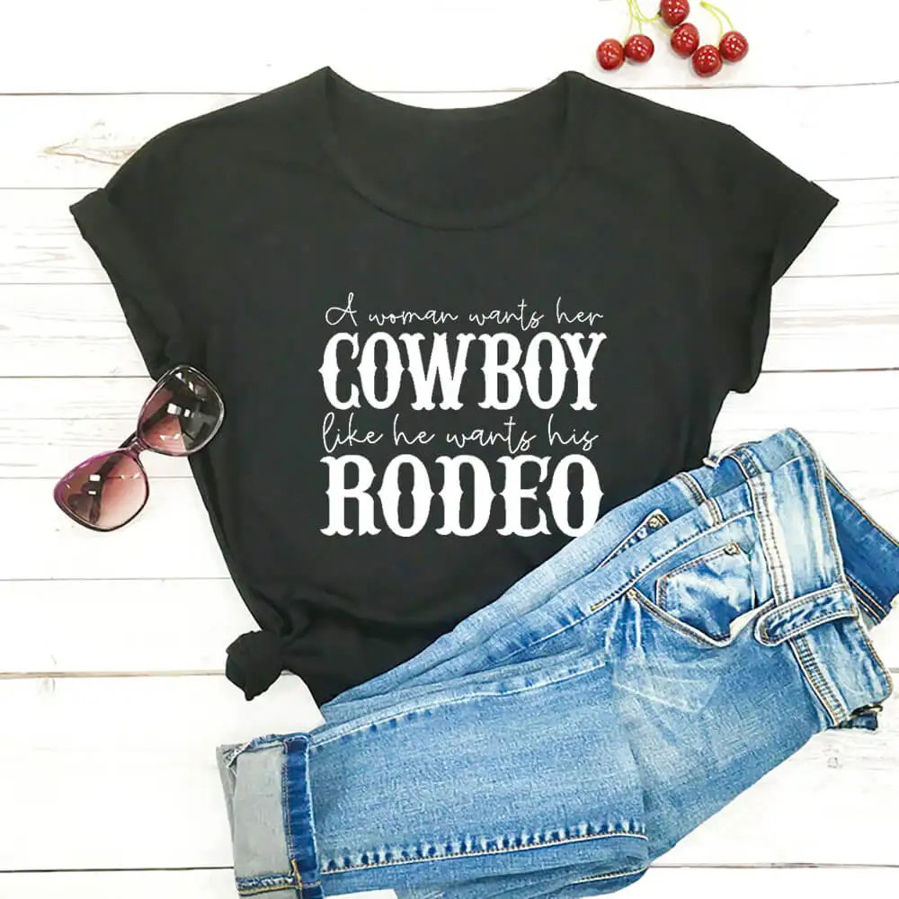 Забавная футболка A Woman want Her Cowboy, Женская хлопковая футбол...