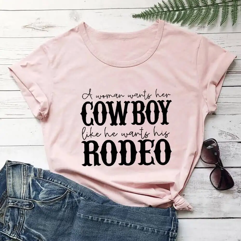 Женская футболка унисекс из 100% хлопка с забавным принтом а женщина хочет ее ковбоя, повседневные топы с круглым вырезом и коротким рукавом, футболка для сельской жизни