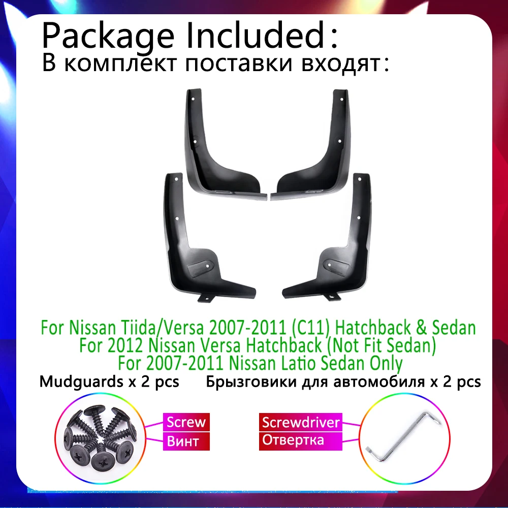 Брызговики для Nissan Tiida Versa Latio C11, 2007 2011, 2008, 2009...