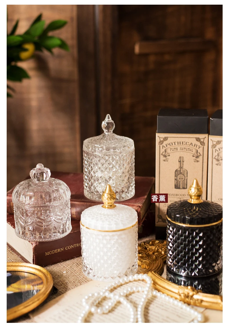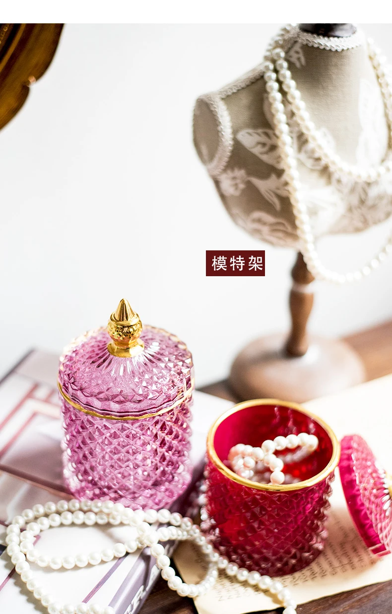 Роскошная разноцветная стеклянная банка для хранения, бутылка для ароматерапии с крышкой, Минималистичная домашняя коробка для хранения ватных тампонов, ювелирных изделий