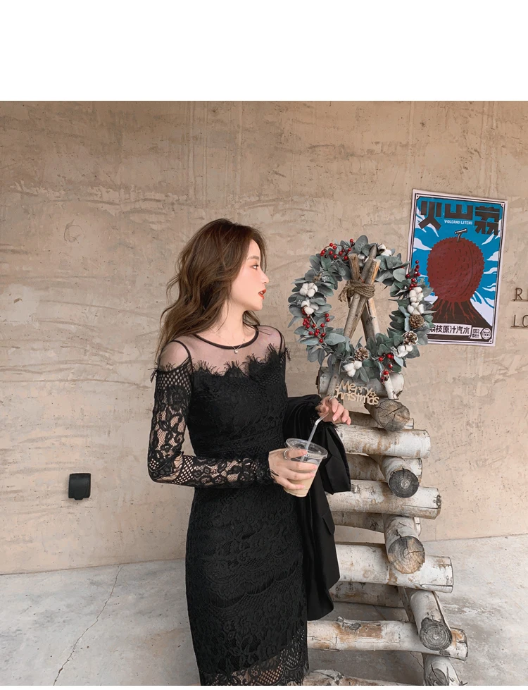 Женское длинное кружевное платье, повседневные платья из прозрачной...