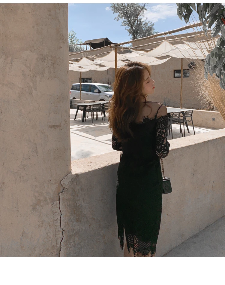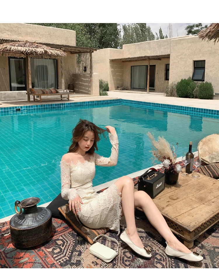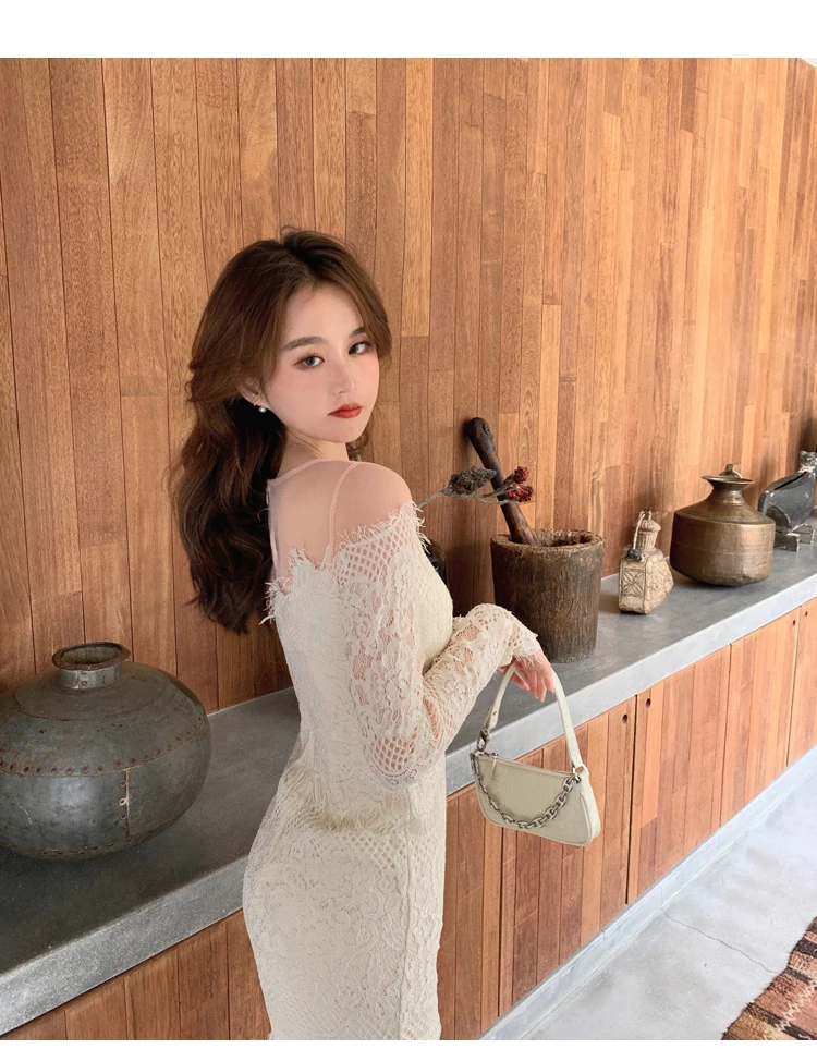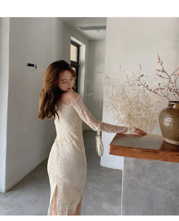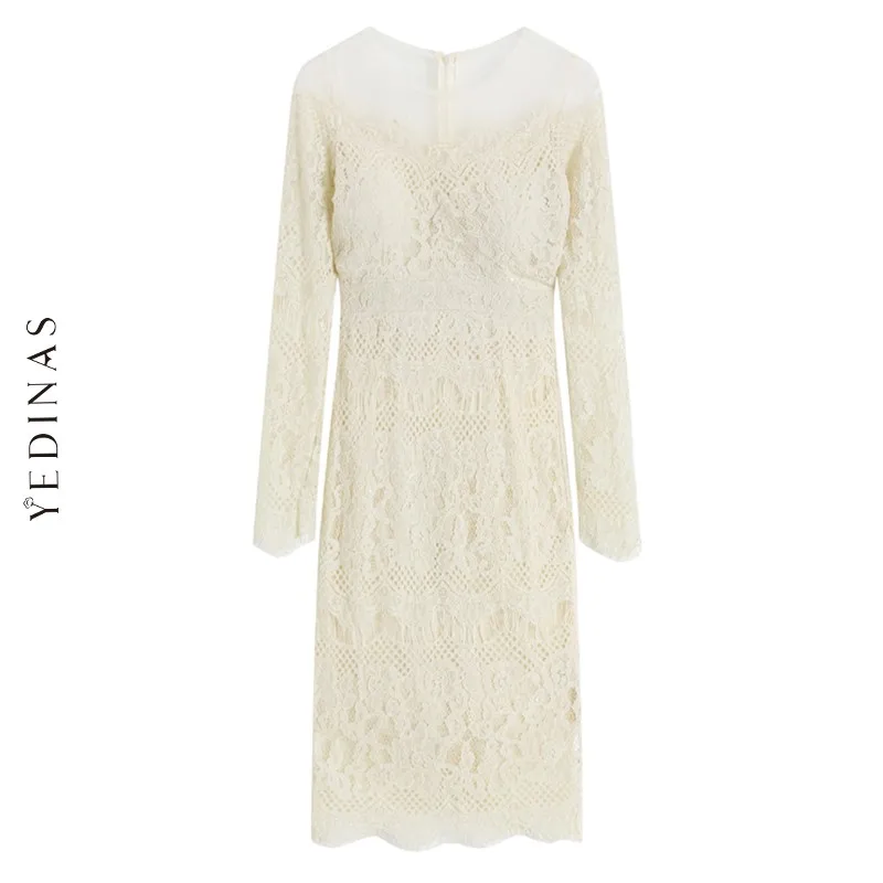 Yedinas 2020 весеннее винтажное элегантное женское белое платье, сексуальные кружевные вечерние платья с открытыми плечами, облегающие Женские платья с длинным рукавом