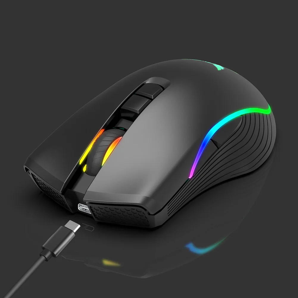 HXSJ Новый 2,4G беспроводная мышь RGB Световой TYPE-C зарядки черны...