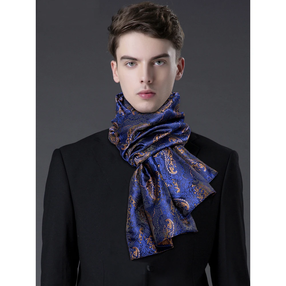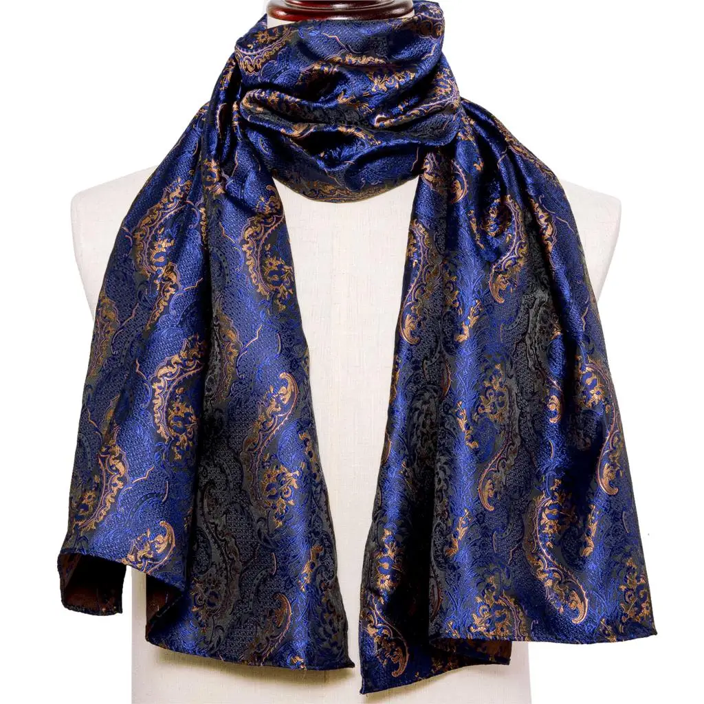 Новый модный мужской галстук синий золотой жаккардовый Пейсли 100% шелковый шарф осень-зима Повседневный деловой костюм рубашка Шаль Шарф Барри Ван