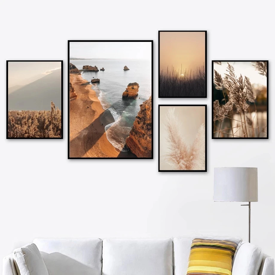 Скандинавский морской пейзаж, постер, Картина на холсте, Розовый пл...