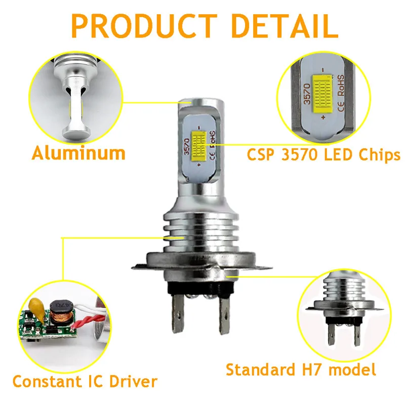 Входной ток: 0.9A (CANBUS)Вся Алюминиевая конструкцияЗамена ламп галогенный светильникПростая установка (модификация не требуется)Продолжительность жизни: 50000 часа