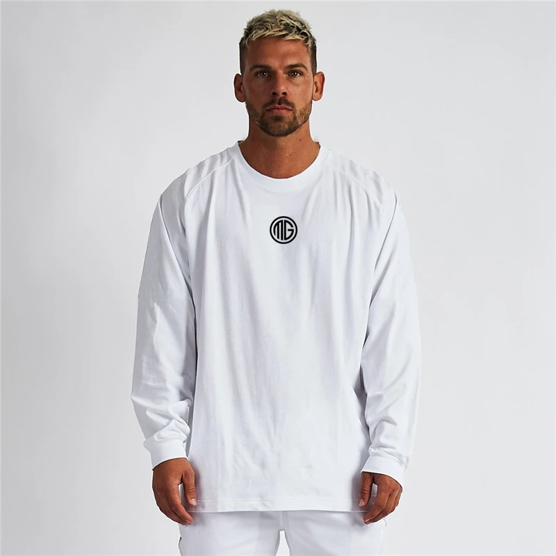 Футболка мужская оверсайз с длинным рукавом, модный топ с спущенным...
