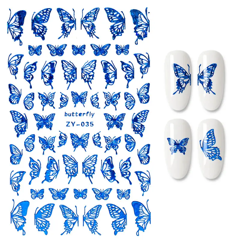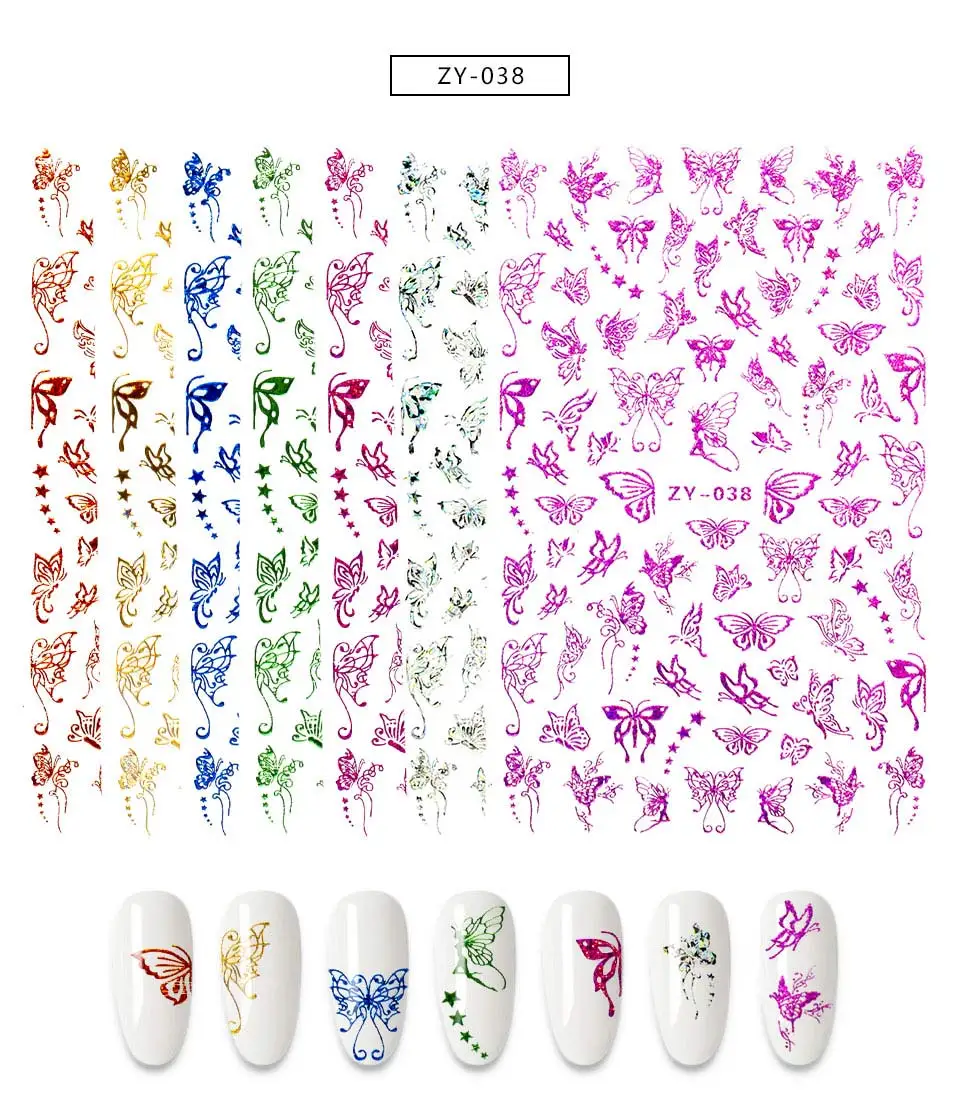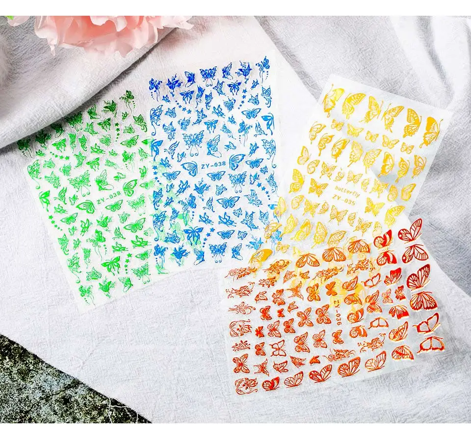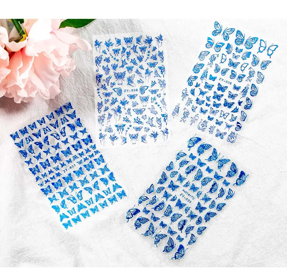 Наклейки для ногтей, 1 шт., голубые, розовые, красочные, с бабочкой, декоративные наклейки для ногтей, "сделай сам" для наращивания