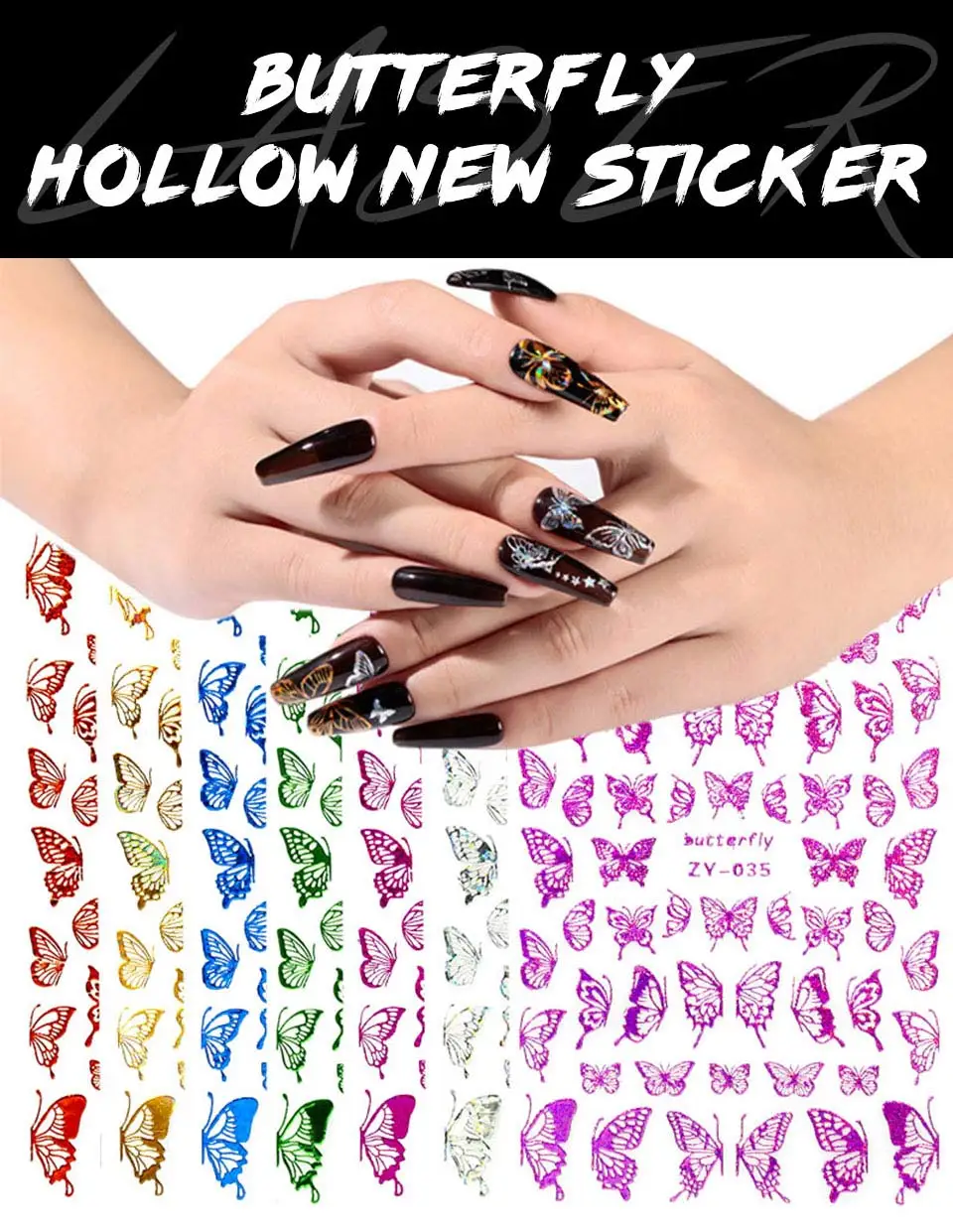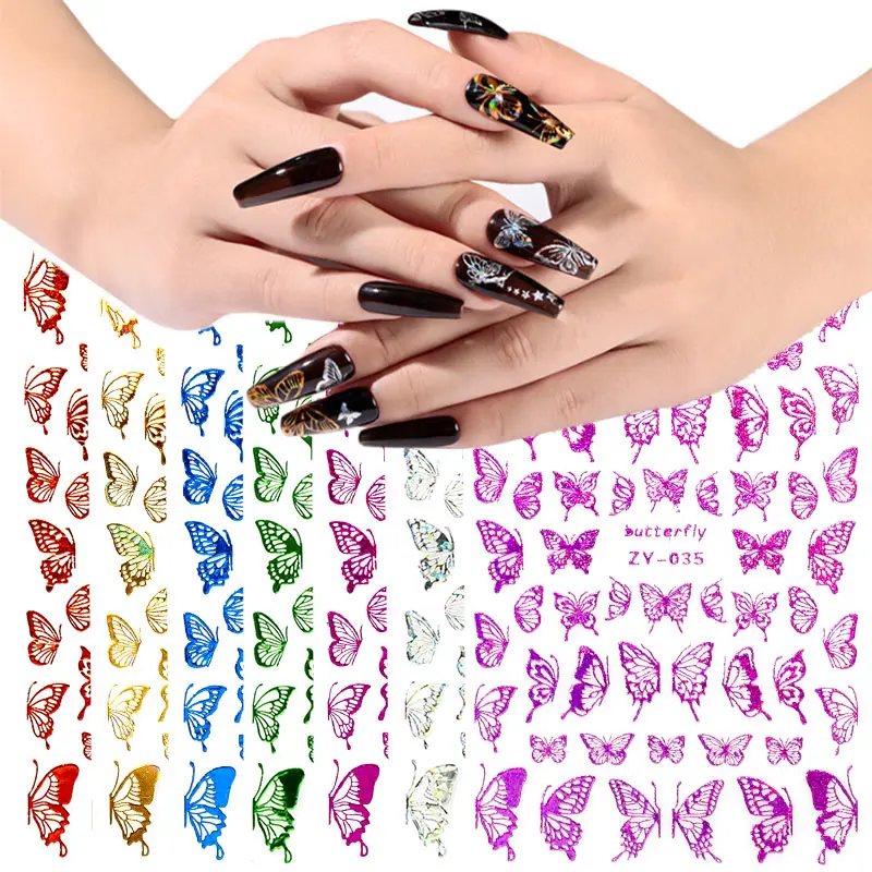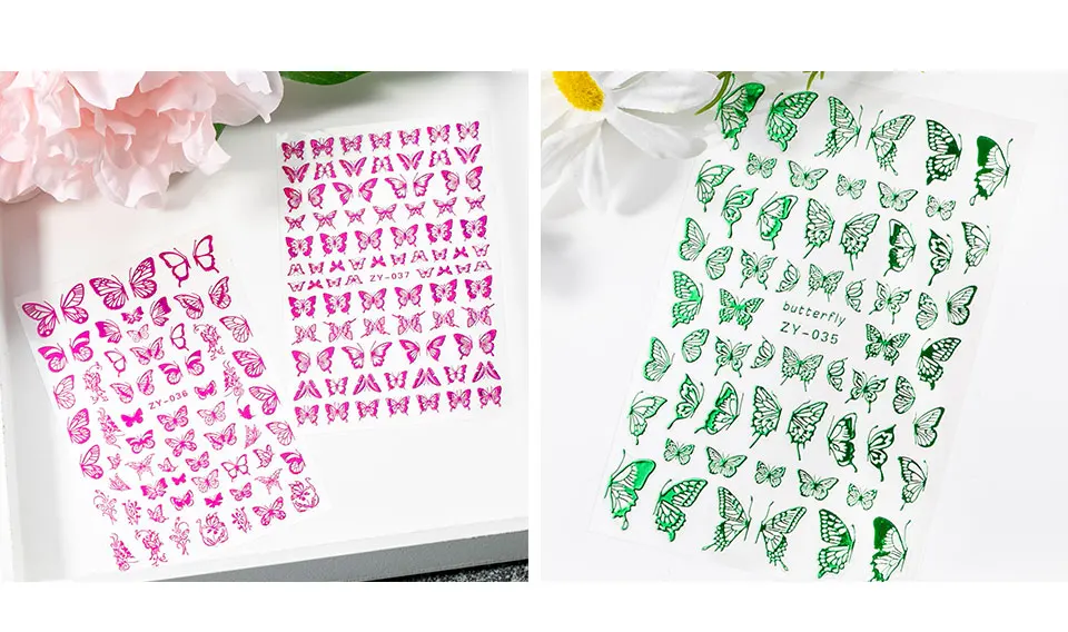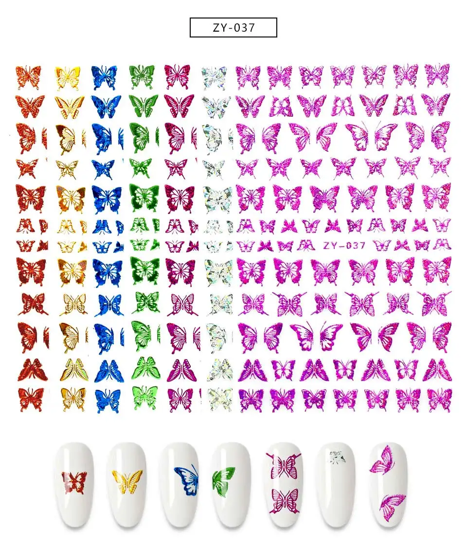 Наклейки для ногтей, 1 шт., голубые, розовые, красочные, с бабочкой, декоративные наклейки для ногтей, "сделай сам" для наращивания