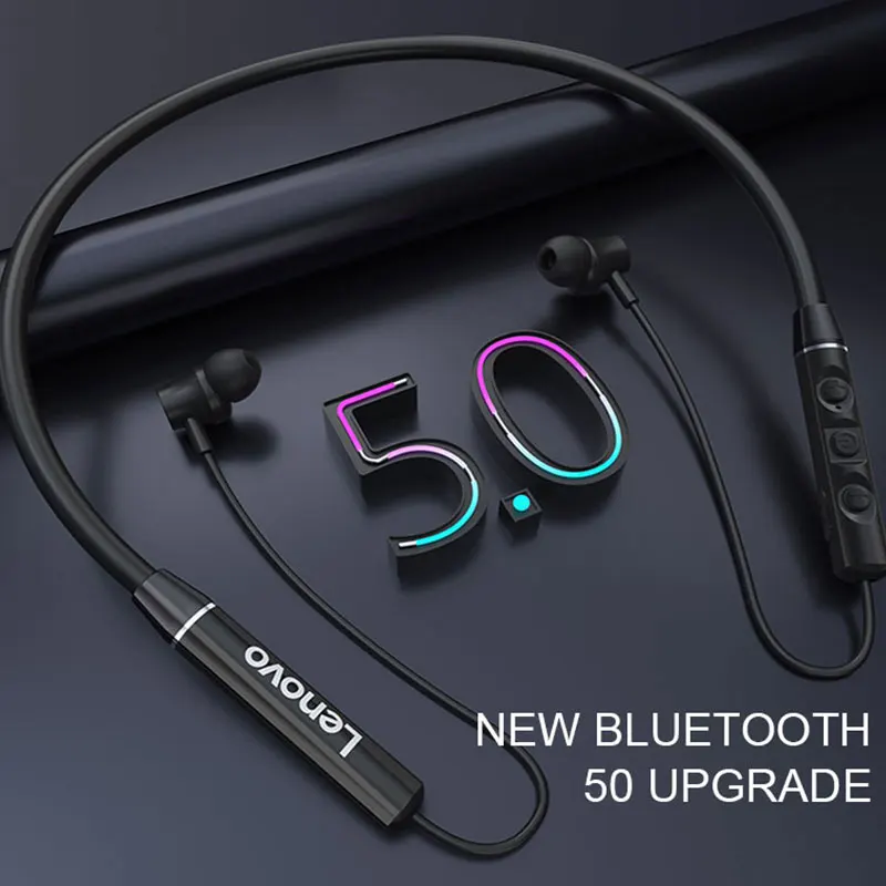 Беспроводные Bluetooth-наушники Lenovo QE03 V5.0 с шейным ободом, спортивные стереонаушники, магнитные наушники-вкладыши с подвесной шеей для телефонов