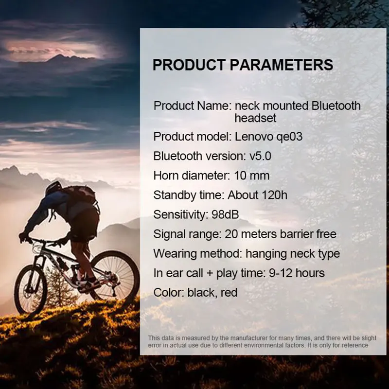 Складные и более легкие, чем другие наушники на рынке, более гибкие и удобные для переноски в сумке или кармане.Он может обеспечить прекрасный опыт громкой связи, sweatproof, отлично подходит для занятий спортом на открытом воздухе и развлечений в помещении.Поддержка регулировки громкости, безручного ответа/зависания, быстрого переключения музыки/паузы/воспроизведения.9-12 часов разговора и воспроизведения музыки, 120 часов в режиме ожидания, вы можете использовать его для работы в течение всего дня.Разработан с технологией Bluetooth 5,0, обеспечивая более быстрое и стабильное подключение и передачу сигнала.Спецификация:Версия: QE03Бренд: LenovoЦвет: черный, красныйРегулятор громкости: поддерживаетсяМикрофон: ДаЧастотный диапазон: 20 Гц-20 кГцВерсия Bluetooth: 5,0 Стиль: В ухоЕмкость аккумулятора:105 мАчВремя работы в режиме ожидания: около 120 часовВремя воспроизведения музыки: 9-12 часовРабочее расстояние: 10 мКачество звука: HIFI стерео объемныйБлок драйвера: 10 мм Магнитное всасывание: магнитное всасывание с двумя ушами для удобного храненияКатегория наушников: умные наушникиСтерео диафрагменные динамики: 10 ммПоддержка устройств: мобильные телефоны и компьютеры с bluetooth Упаковка: цветная коробкаПримечание:-Возможны небольшие погрешности в размере при ручном измерении.-Отклонение цвета может отличаться из-за различных настроек монитора, пожалуйста, поймите.Упаковочный лист