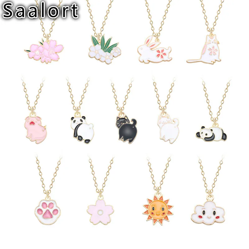 Милая мультяшная Подвеска Ожерелье Панда Кролик свинка облако узор цепочка очаровательные женские аксессуары Очаровательная бижутерия подарок для женщин девочек