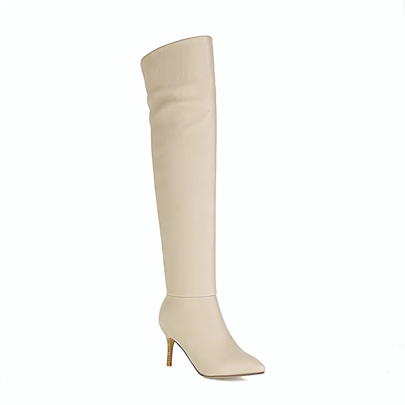 Женские сапоги на шпильке MORAZORA, черные сапоги до колена, с острым носком, большие размеры 34-43, зима 2021