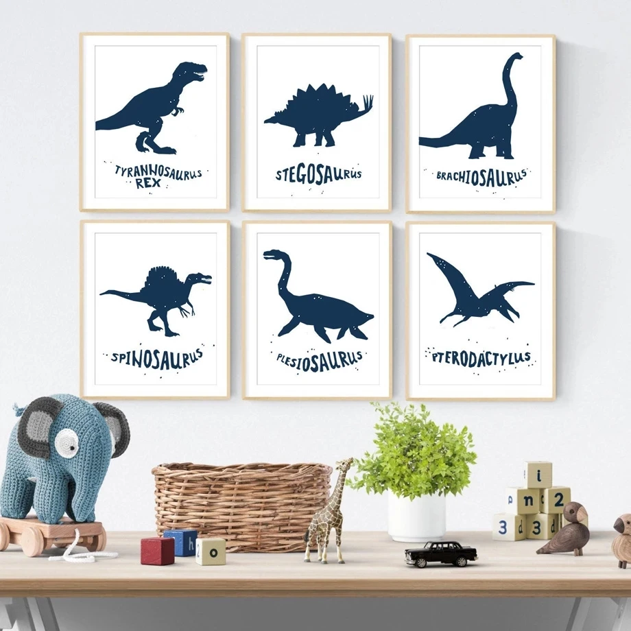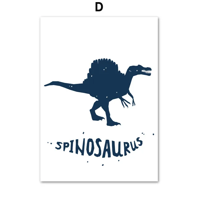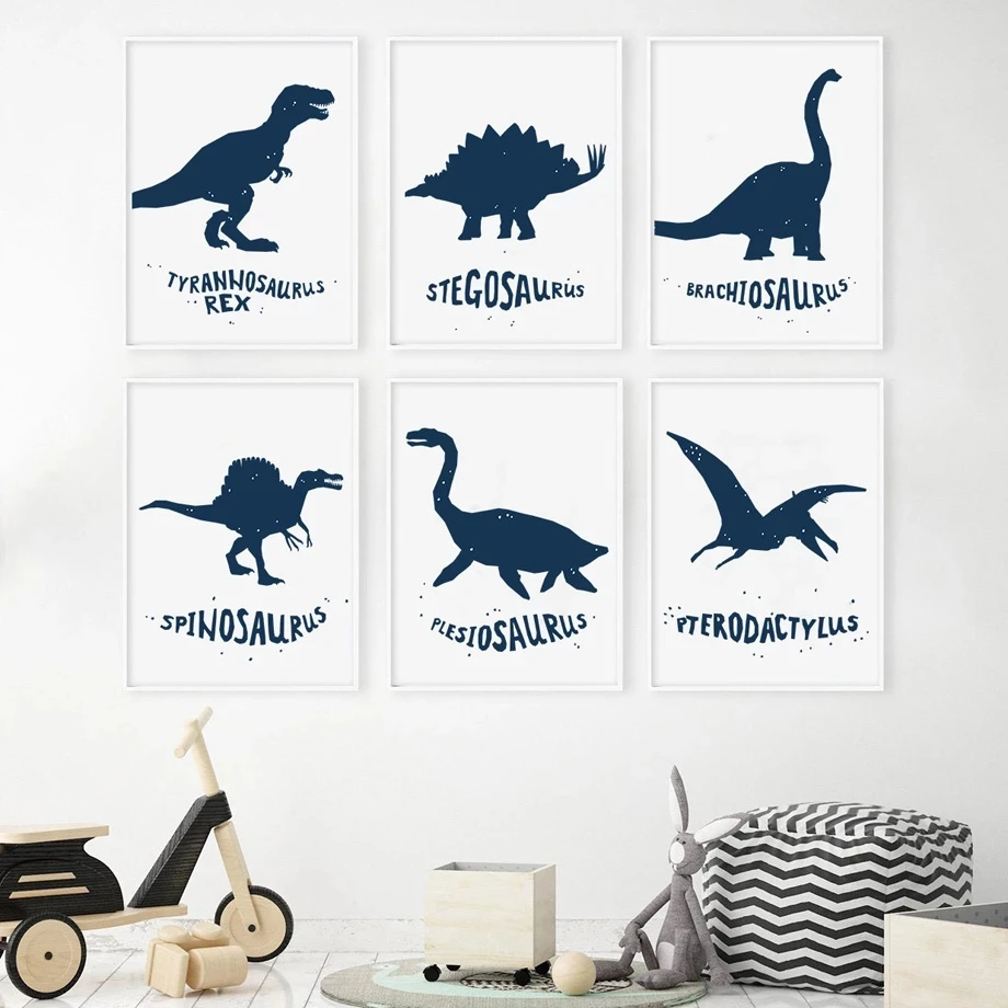 Минималистичная монохромная Картина на холсте с изображением динозавра, постер с животными, настенное искусство для детской комнаты, детской, домашний декор