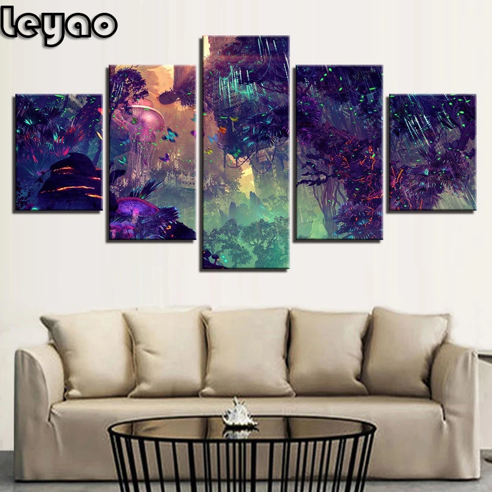 Алмазная картина, 5 штук, красочная светящаяся лесная фантазия, искусство, домашний декор, мульти-картина, алмазная вышивка, Грибное дерево
