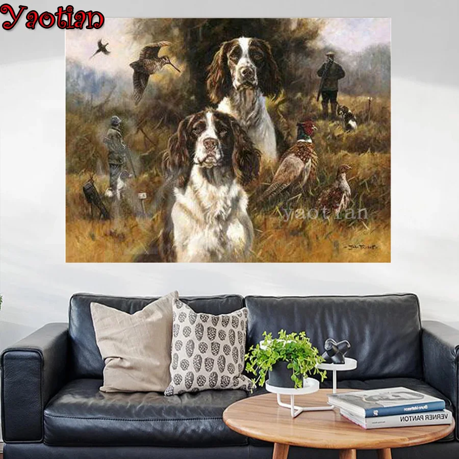 Алмазная 5D Вышивка «сделай сам», картина с полными квадратными стразами, английский Спрингер, спаниель, охотник, круглая вышивка крестиком, мозаика