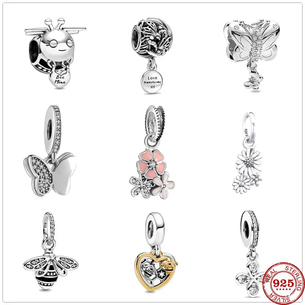 Подвеска в виде бабочки и пчелы из стерлингового серебра 925 пробы, изящные бусины сделай сам, подходит для оригинальных браслетов Пандоры, женских ювелирных изделий