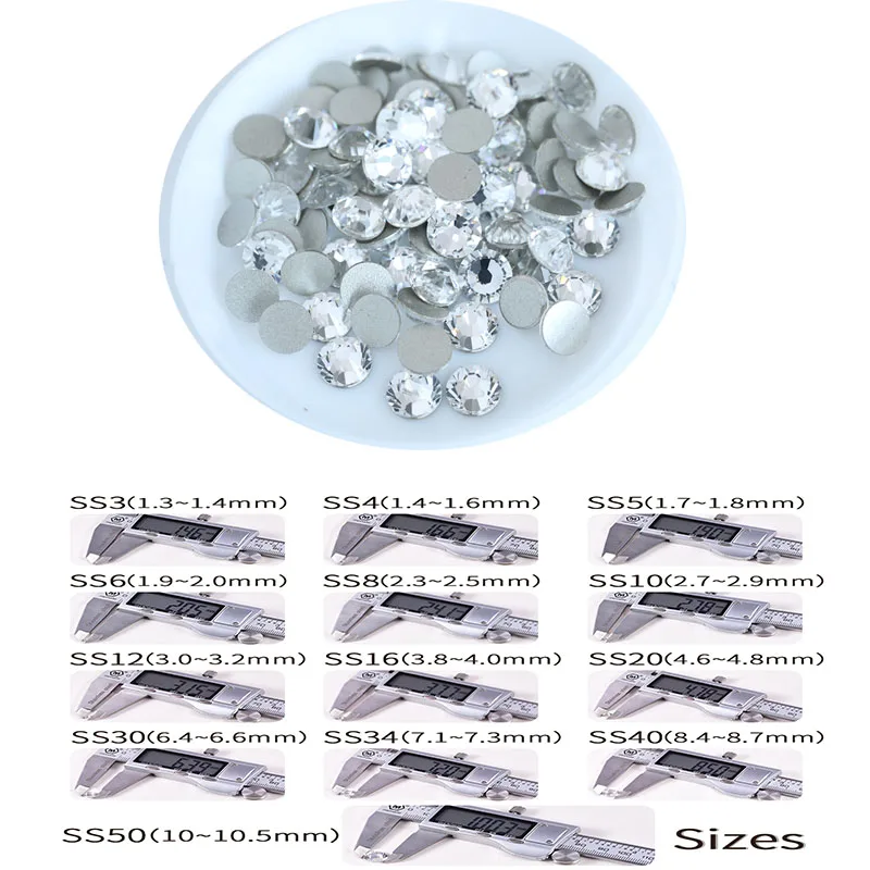 Стразы для дизайна ногтей, SS3-SS40 кристаллов, блестящие стразы s,...