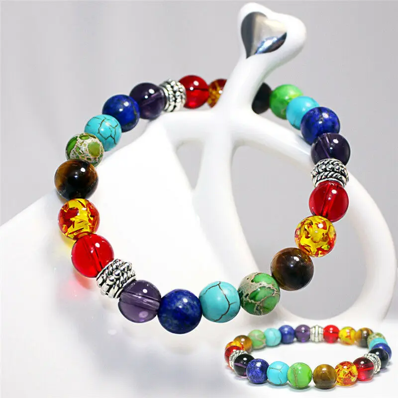 Многоцветные 7 Чакр Исцеление баланс бусины Браслеты Натуральный Ка...