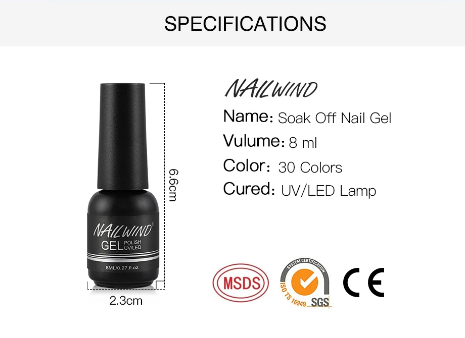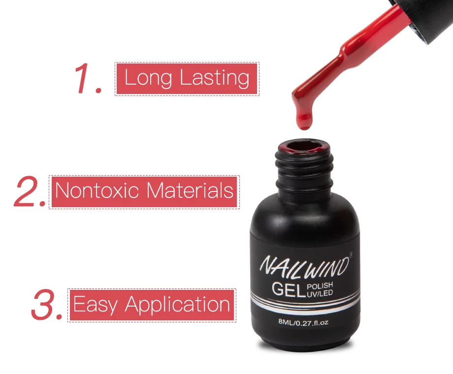 Характеристики Товара: Название бренда: NAILWIND Название: отмачиваемый гель для ногтей Объем: 8 мл Цвет: 60 цветов s Излеченная: УФ/Светодиодная лампа Мы уверены, что наш Гель-лак лучшего качества на Aliexpress. -Качество-наш первый приоритет. -Светильник, почти без запаха (только верхнее покрытие и основа имеют умеренный запах), мы применяем только органическую текстуру для защиты вашего здоровья. -Цвет будет сиять до 30 дней. -Цвета на выбор, подходят для всех случаев.