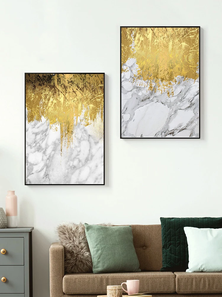 Роскошный золотой абстрактный постер, художественная живопись, укра...