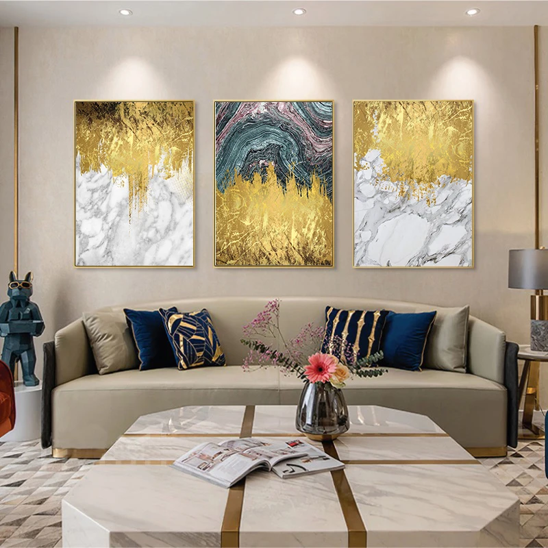 Постер на холсте с позолотой и голубым золотом, Современное украшен...
