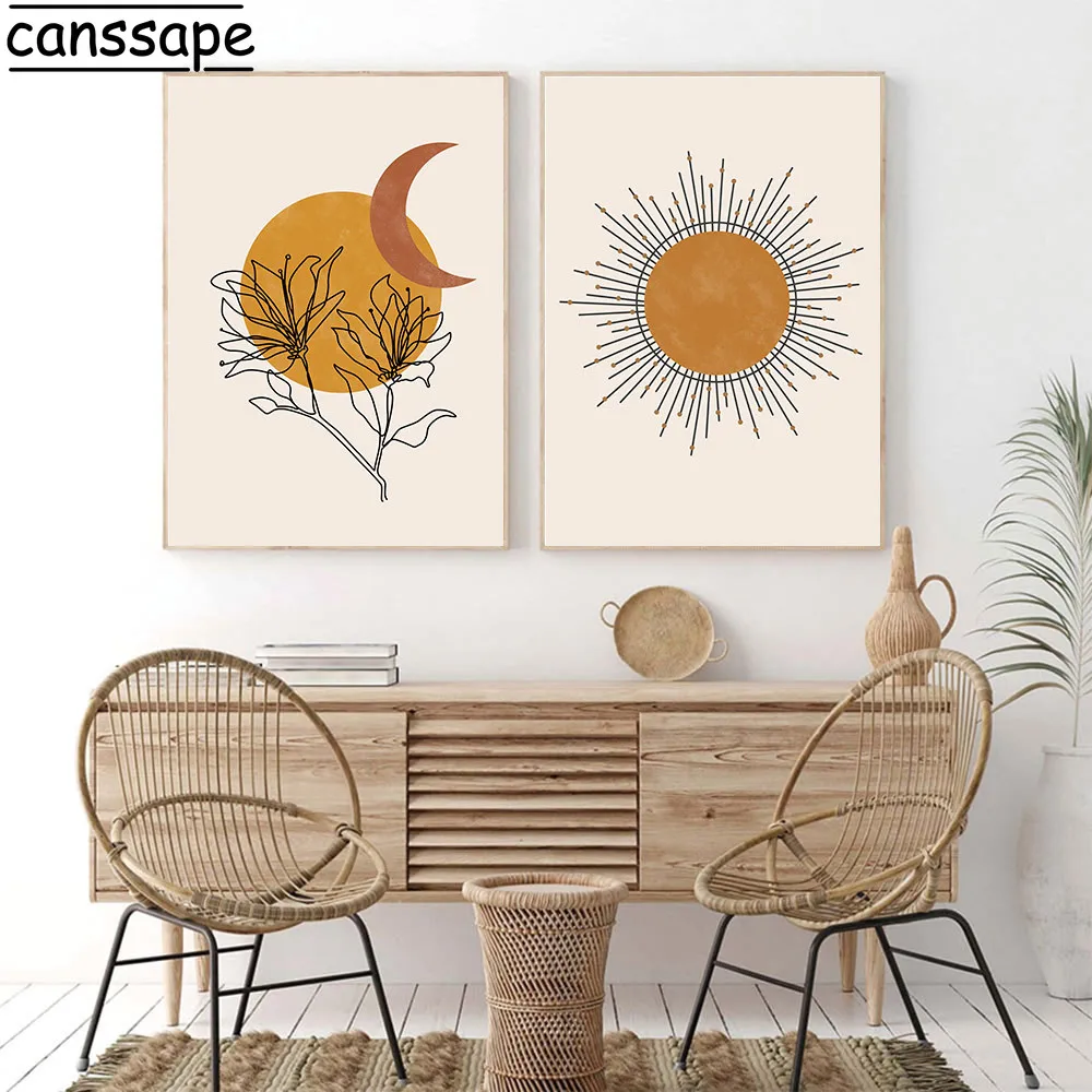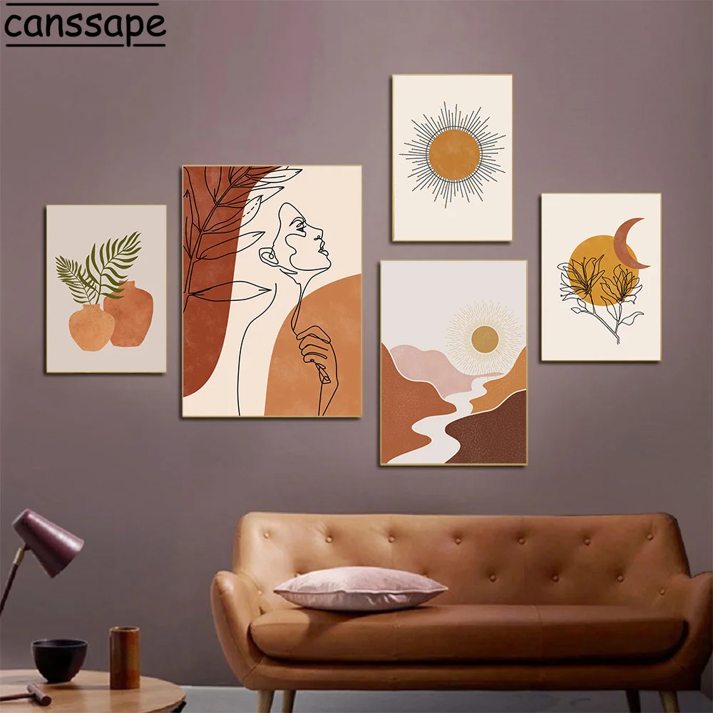 Абстрактные плакаты, линия, лицо, боди-стена, Художественная печать, солнце, луна, холст, живопись, скандинавский плакат, настенные картины в стиле бохо для декора гостиной