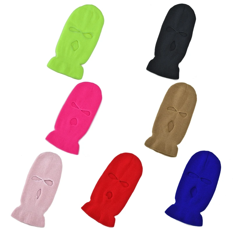 Маска-Балаклава для мужчин и женщин, неоновая однотонная Вязаная Зимняя Теплая Шапка-бини с тремя отверстиями для езды на велосипеде и лыжах