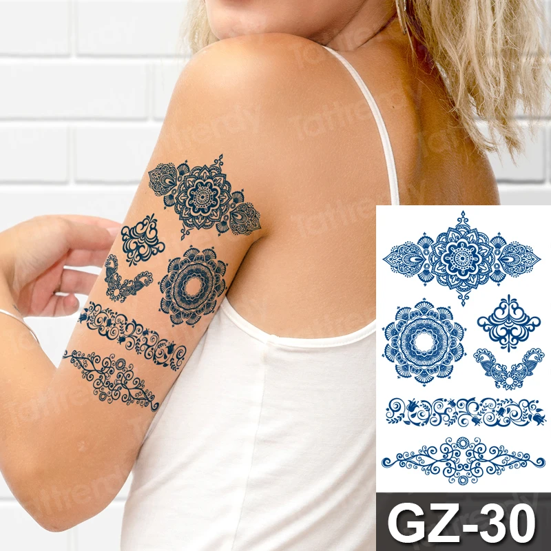Татуировка хной Индия браслет, нарисованный мехенди цветок Водонепроницаемый временные сок чернила стикер татуировки Фруктовый гель длительный гели для мужчин и женщин