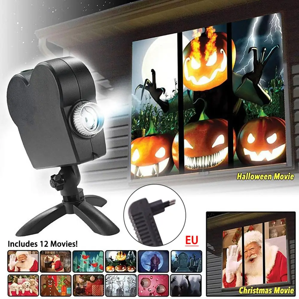 Рождественский лазерный проектор, 12 фильмов, мини-проектор для домашнего кинотеатра с окошком, домашнийнаружный проектор Wonderland