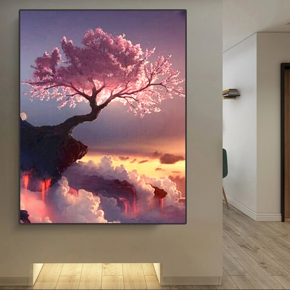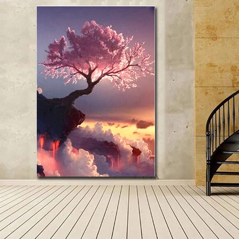 Художественная живопись персиковое дерево с розовым цветком персика пейзажная живопись печатные плакаты и принты украшение стены дома живопись