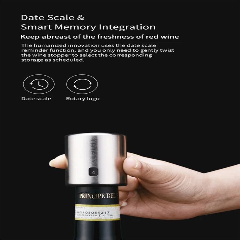 -[Эффективное сохранение]: уровень вакуума всегда поддерживается на высоком уровне 0,038mpa, и долгосрочное сохранение свежести. Через 7 дней красное вино открывается, и вкус такой же хороший, как и оригинальное.-[Дизайн гладкой формы]: уникальный круглый дизайн удаляет традиционную головку насоса с винной пробкой, которая значительно уменьшается по размеру, светильник и легко устанавливается.-[Масштаб даты и интеллектуальная интеграция памяти]: гуманизированная инновация использует функцию напоминания о шкале даты, и вам нужно только аккуратно скрутить винную пробку, чтобы выбрать соответствующее хранилище по расписанию.-[Расположен горизонтально и вертикально]: Оптимизирован для внутренней структуры обновления, после использования, вместе с винной бутылкой можно не только разместить вертикально, но и разместить горизонтально, экономя пространство для хранения