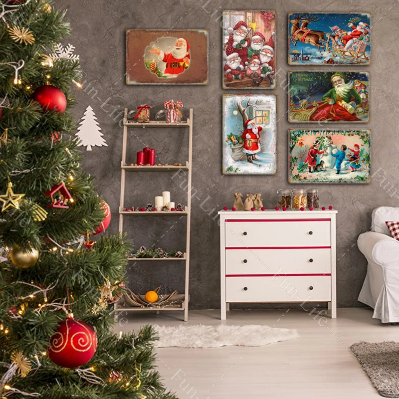 Рождественский винтажные металлические знаки плакат жестяная вывеска Санта Клаус Ретро табличка для кафе Бар паб дома украшения для рождественской елки подарка