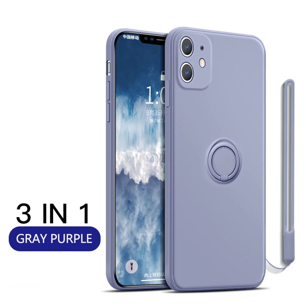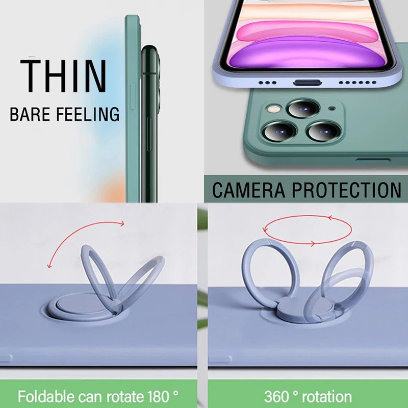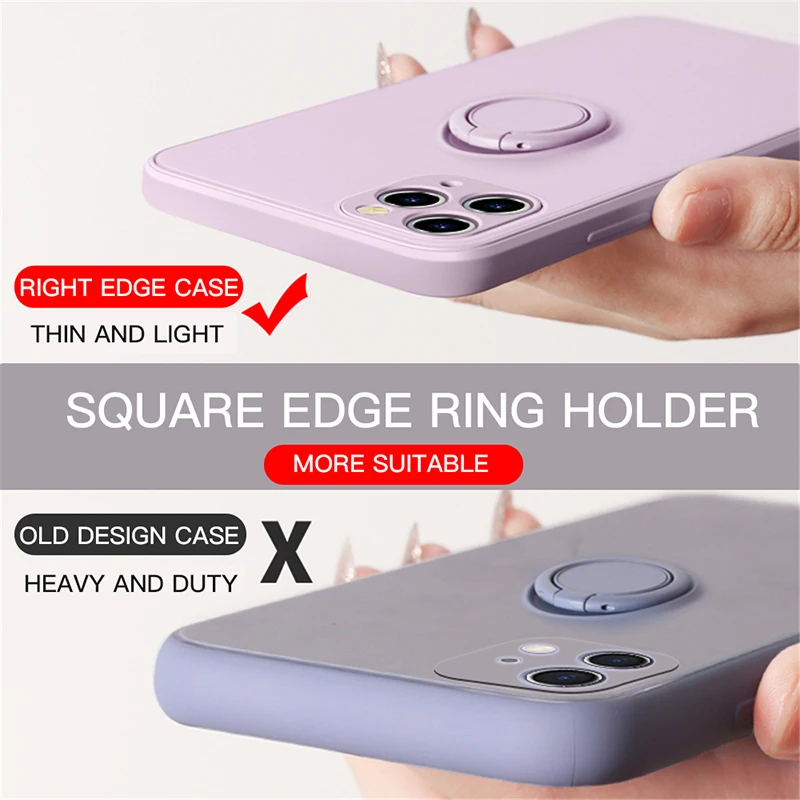 ХарактеристикиSquare Liquid Silicone Phone Cases Magnetic Finger Ring Kickstand Case